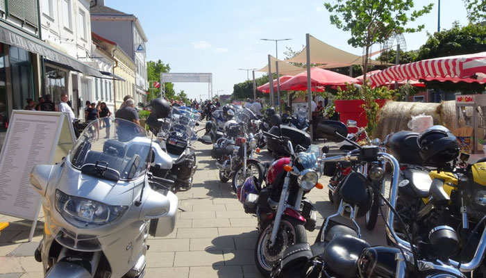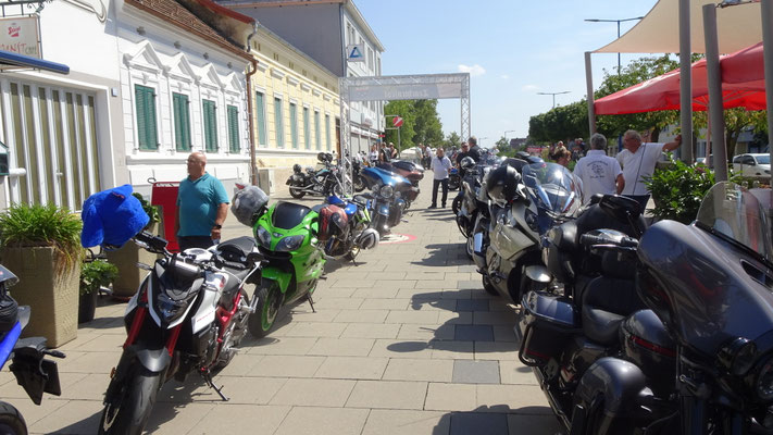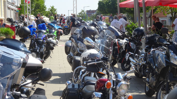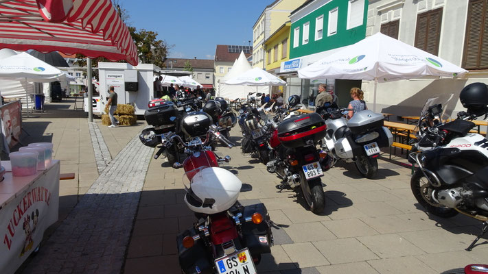 Der Hauptplatz war fast zu klein für Motorräder aller Marken wie den chromblizenden Harleys, BMW Boxern, Honda, Kawasaki, Suzis, Yamahas, Ducatis und viele, viele andere.