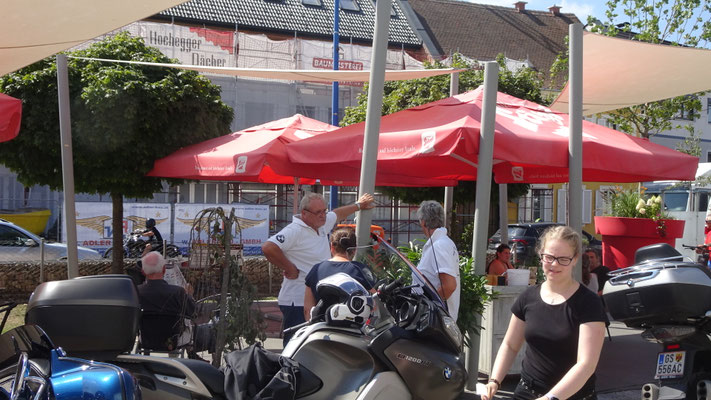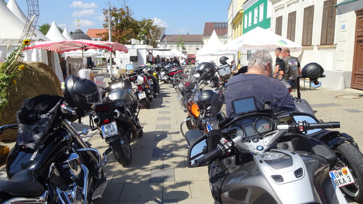 Die gemeinsame Ausfahrt bei sonnigen 35° (im Schatten?) führte durch unser schönes Südburgenland und durch die Bezirkshauptstadt Güssing. Als Abschluss gab es dann beim Winzerfest für jeden Biker ein gratis Getränk und Benzingespräche bis in den späten Abend hinein ...
