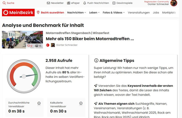 Statistik des Artikels im der Gratiszeitung "Mein Bezirk" - Bezirke Güssing/Jennersdorf